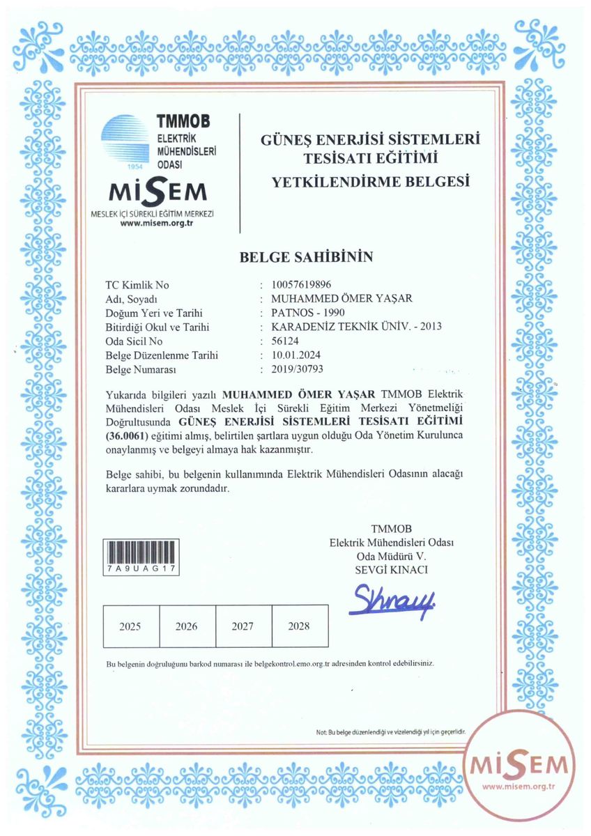 Güneş Enerjisi Yetkilendirme 2024